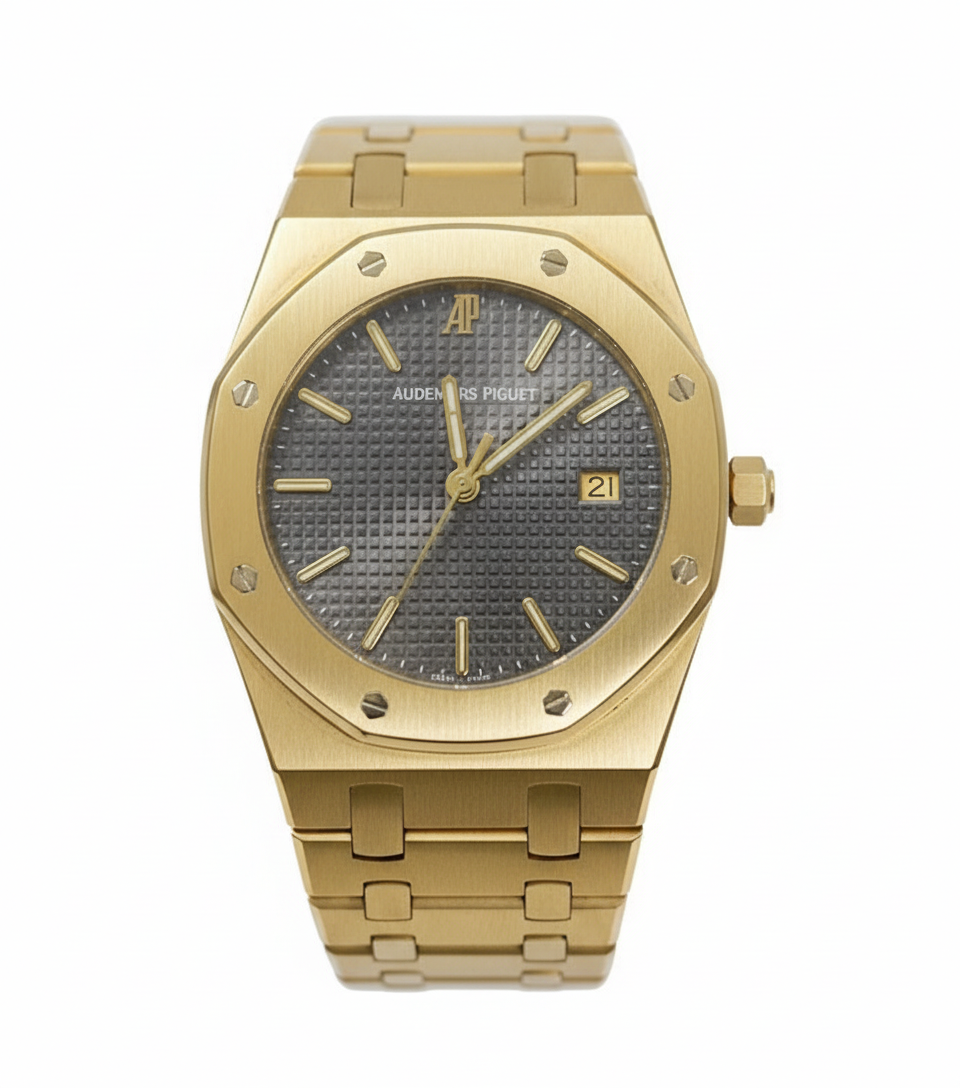 Experience timeless elegance with the Audemars Piguet Royal Oak 33mm Unisex Watch. This stunning luxury timepiece is crafted from high-quality 18K yellow gold that exudes sophistication and style. With a case size of 33 mm and a fixed bezel also made from durable 18K yellow gold, this watch is designed to make a statement on any wrist. The striking gray face features non-numeric hour marks that add to its unique charm while maintaining readability. Powered by reliable quartz movement, this watch ensures precision and accuracy for everyday wear or special occasions alike. The fold-over push-button clasp offers secure closure while complementing the luxurious full band made from solid yellow gold. Although it comes without original box or papers, the impeccable craftsmanship of this Audemars Piguet piece speaks for itself. Water-resistant and perfect for both men and women, this unisex design makes it an ideal choice for anyone who appreciates fine horology. Elevate your collection with the Audemars Piguet Royal Oak—a masterpiece that combines art and functionality in one stunning package.