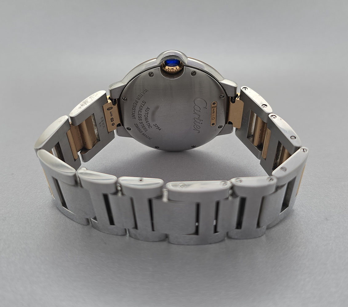 Introducing the exquisite **Cartier Ballon Bleu** 36mm W2BB0003 unisex watch—where sophistication meets timeless craftsmanship. This luxurious timepiece features a stunning **silver face**, perfectly complemented by the intricate details of **Roman numeral indices**. Crafted from premium **18K rose gold and stainless steel**, this wristwatch is designed for those who appreciate elegance in every detail. With a case size of **36 mm**, it’s an ideal fit for various wrist sizes, including those with a wrist measurement of up to **6 1/4 inches**. The durable materials not only provide aesthetic appeal but also ensure longevity and resilience against everyday wear. The fixed bezel made from **18K rose gold** adds to its refined look while enhancing its overall durability. Equipped with a reliable manual movement mechanism and boasting water resistance up to **30 meters (100 feet)**, this watch seamlessly blends functionality with luxury. The **double fold clasp** ensures secure wearing while providing ease of use. The Cartier Ballon Bleu W2BB0003 is more than just a timepiece; it's an expression of style that transcends gender norms. Whether worn casually or on special occasions, it makes a statement about sophistication. Though this item does not come with its original box, it includes all necessary papers confirming its authenticity—a hallmark of the distinguished Cartier brand. Elevate your collection or find the perfect gift with the unparalleled charm of the Cartier Ballon Bleu unisex watch today!