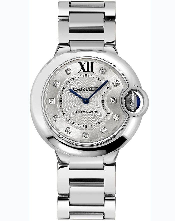 Introducing the exquisite **Cartier Ballon Bleu 36.5mm W69011Z4**, a stunning addition to any woman's collection of luxury timepieces. Crafted by the renowned brand **Cartier**, this elegant wristwatch showcases a case size of **36.5 mm** and is made from high-quality **stainless steel**, ensuring both durability and style. The captivating **silver face** is adorned with non-numeric hour marks that enhance its sophisticated look while maintaining clarity for easy readability. The **automatic movement** ensures precise timekeeping without the need for batteries, making it a reliable companion for your daily adventures. Designed with both comfort and style in mind, this wristwatch features a full band in matching **stainless steel**, secured with a convenient fold clasp for ease of wear. Whether you're dressing up for an event or looking to elevate your everyday outfit, this luxurious piece is versatile enough to suit any occasion. With a water resistance of up to **30 meters (100 feet)**, you can confidently wear the Cartier Ballon Bleu without worry during light swimming or showering—though it’s best kept away from extreme conditions. Please note that this product does not come with original box or papers but remains an exceptional choice for those seeking an iconic and timeless accessory. Indulge yourself in luxury with the Cartier Ballon Bleu 36.5mm women’s watch—where elegance meets functionality!