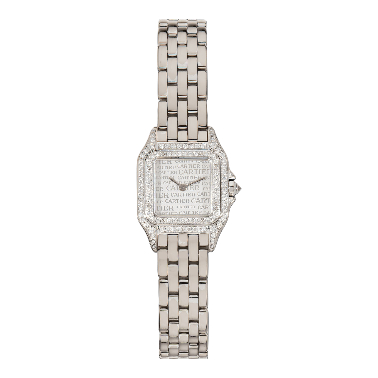 Introducing the **Cartier Panthère Classique et Figaro**, a timeless piece designed for the discerning woman who appreciates elegance and sophistication. This luxurious **22mm women's watch** features a refined case crafted from **18K white gold**, exuding an aura of opulence that is both captivating and understated. The striking **silver face** is adorned with non-numeric hour marks that offer a minimalist yet classy aesthetic. The **quartz movement** ensures precise timekeeping while adding to the overall reliability of this stunning timepiece. With its fixed bezel made of matching **18K white gold**, this watch seamlessly blends style with functionality. Designed for comfort and versatility, the full band in **silver** complements any outfit—whether you're dressing up for a special occasion or enhancing your everyday look. The fold clasp provides secure closure while maintaining an elegant appearance on your wrist. While this exquisite timepiece does not come with original box or papers, it stands as a testament to Cartier's commitment to quality and craftsmanship. Additionally, it boasts impressive water resistance features, making it not just beautiful but also practical for everyday wear. Elevate your accessory collection with the Cartier Panthère Classique et Figaro—a perfect blend of luxury and femininity that every woman deserves. Whether you’re gifting yourself or someone special, this iconic piece is sure to impress.
