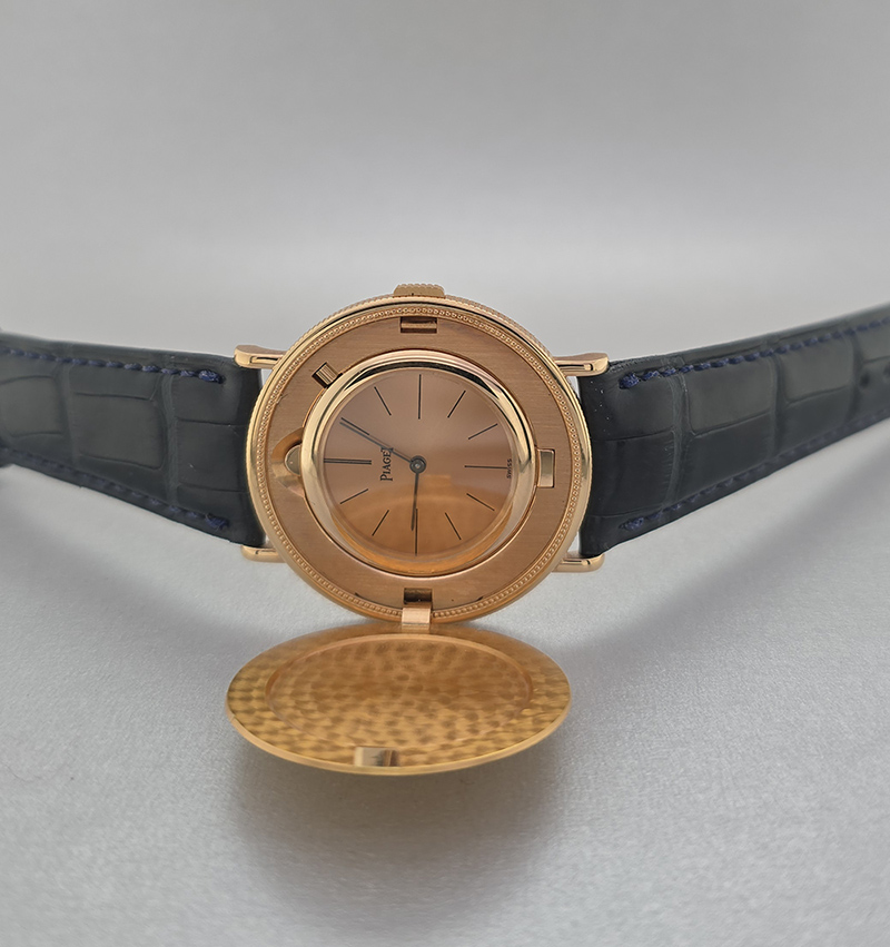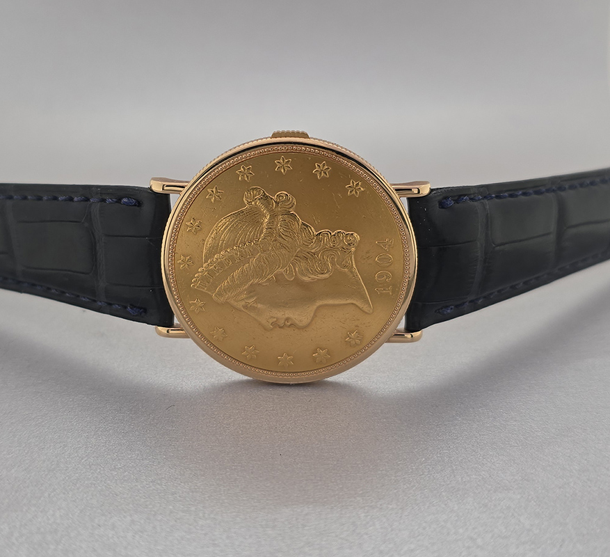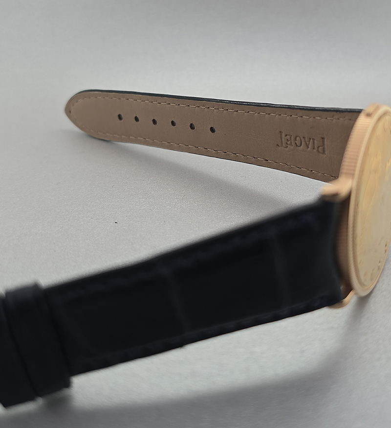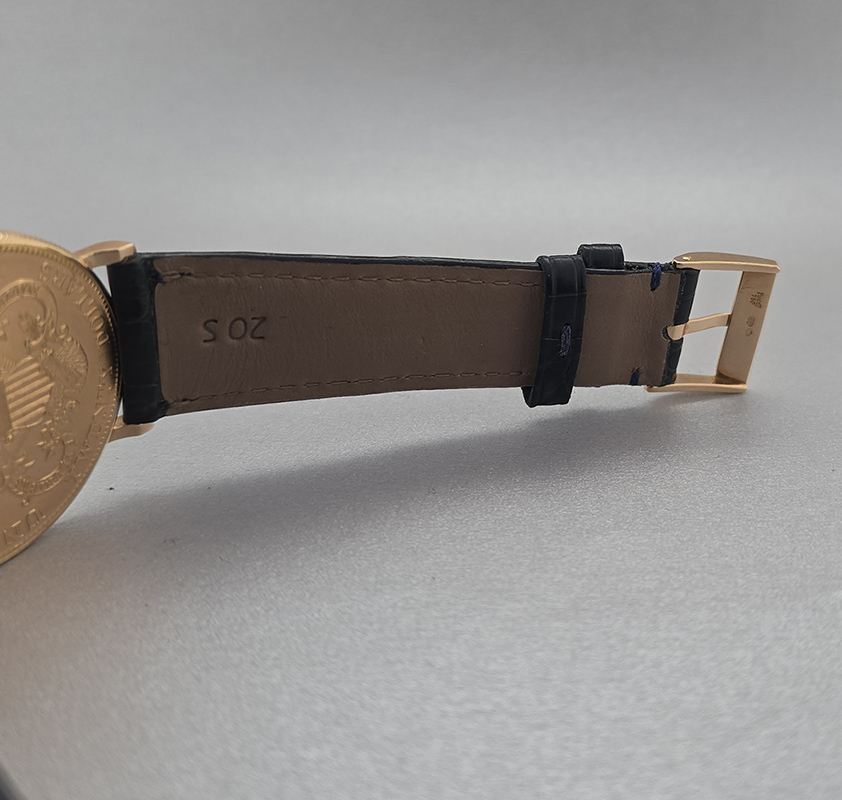 Introducing the remarkable **Piaget $20 Double Sided Coin Men's Watch**, an elegant fusion of artistry and craftsmanship that defines luxury timepieces. This stunning watch features a **34.5 mm** case meticulously crafted from **18K yellow gold**, making it not only visually striking but also durable and refined. The unique design showcases a captivating **gold face** adorned with **non-numeric hour marks**, ensuring readability without compromising style. With its sophisticated aesthetic, this watch is perfect for any occasion—whether you're attending an upscale event or enjoying a casual day out. Equipped with a reliable **manual movement**, this Piaget timepiece reflects precision engineering that resonates with enthusiasts and collectors alike. The luxurious **leather strap** adds to its charm while ensuring comfort on your wrist. Although it comes without box or papers, the timeless appeal of this Piaget piece stands on its own merit. Water-resistant and crafted for men who appreciate quality and elegance in their accessories, this is more than just a timekeeper; it's a statement of class. Indulge yourself or surprise someone special with the gift of sophistication—own the **Piaget $20 Double Sided Coin Men's Watch** today!