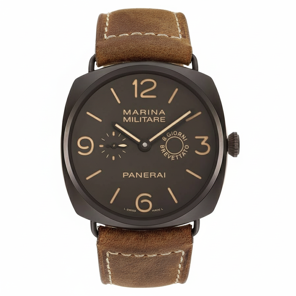 Experience the elegance and sophistication of the **Panerai Luminor PAM00112**, an exceptional men’s watch that seamlessly blends style with functionality. This luxury timepiece boasts a substantial **47 mm stainless steel case** that not only enhances its durability but also provides a modern aesthetic that is perfect for any occasion. The striking **black face** showcases **Arabic numerals**, making it easy to read at a glance. Complementing this classy dial is a high-quality **brown rubber strap**, designed for both comfort and endurance. The **tang clasp** ensures a secure fit on your wrist while maintaining an effortlessly stylish look. With an impressive **water resistance of 300 meters (1000 feet)**, this timepiece is ideal for those who enjoy aquatic adventures or simply want peace of mind in their everyday wear. The reliable **manual movement** guarantees precise timekeeping, reflecting the craftsmanship synonymous with the Panerai brand. This model does not come with box or papers but offers unbeatable value as one of the finest luxury watches in its class. Perfect for discerning gentlemen who appreciate timeless design and superior engineering—add the Panerai Luminor PAM00112 to your collection today!