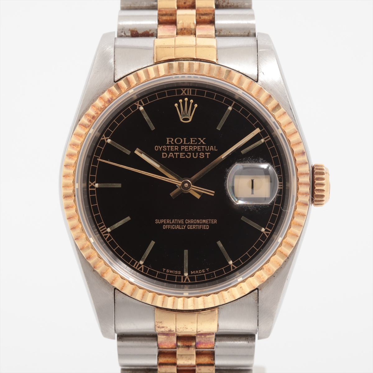 Elevate your style with the exquisite **Rolex Datejust** 36mm (Reference: **16233**), a timeless masterpiece crafted for the discerning gentleman. This stunning **men's luxury watch** features a striking case made from a blend of **18K yellow gold** and durable stainless steel, ensuring both durability and sophistication. With a classic **case size of 36 mm**, this timepiece is perfectly sized for everyday wear or special occasions alike. The elegant **champagne stick dial** adds a touch of refinement, complemented by non-numeric hour marks that enhance its sophisticated aesthetic. The Rolex Datejust is powered by an **automatic movement**, guaranteeing precision and reliability with every tick. The watch is designed with functionality in mind; it boasts a water resistance of up to **100 meters / 330 feet**, making it suitable for various activities without sacrificing style. Adorning this luxury timepiece is the iconic **Jubilee band**, known for its comfort and distinctive look. It features a secure **fold clasp** that ensures it stays comfortably on your wrist throughout the day. Although this particular model does not come with original box or papers, its retail value reflects its prestigious status as one of the most sought-after models in horology. Whether you're adding to your collection or searching for an unforgettable gift, the Rolex Datejust 16233 in yellow gold and stainless steel is sure to impress. Experience luxury like never before with this exceptional timepiece!