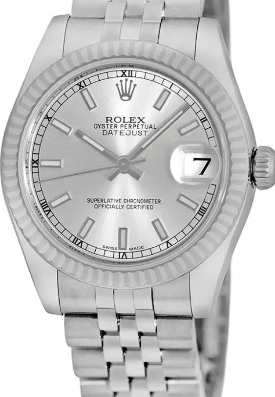 Elevate your style with the exquisite **Rolex Datejust 31mm** (Reference: **178274**), a luxurious women's watch that embodies timeless elegance and superior craftsmanship. Crafted from high-quality **stainless steel**, this beautiful timepiece features a striking **silver face color** that perfectly complements its sophisticated design. With a case size of **31 mm**, this watch is designed to fit comfortably on any wrist. The elegant dial boasts **non-numeric hour marks**, ensuring easy readability while adding to its classic aesthetic. Powered by an **automatic movement**, the Rolex Datejust guarantees precision and reliability for years to come. The watch is equipped with a hidden fold clasp that provides both security and comfort when worn. Its robust construction ensures it remains water-resistant, making it suitable for various occasions—whether you're at work or enjoying a casual day out. Originally produced in **2005**, this Rolex Datejust is not just a watch; it's an investment in luxury and style. While it does not come with full box or papers, its impeccable quality speaks volumes about its heritage as a leading name in horology. Indulge yourself or surprise someone special with this stunning Rolex Datejust 31mm—where elegance meets functionality in perfect harmony.