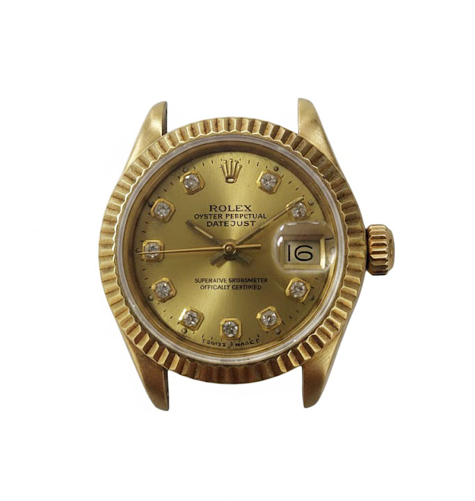 Elevate your timepiece collection with the exquisite **Rolex Datejust** 26mm (Reference: **6917**), a perfect blend of luxury and functionality designed specifically for women. Crafted from **18K yellow gold**, this stunning watch showcases an elegant **champagne face** adorned with non-numeric hour marks, making it both stylish and easy to read. This beautiful timepiece features a **fluted bezel** that adds a touch of sophistication and is complemented by a comfortable leather strap secured with a reliable tang clasp. With its compact **26 mm case size**, this watch is ideal for those who appreciate refined details in their accessories. The Rolex Datejust is not just about looks; it also boasts impressive performance capabilities. Powered by a manual movement mechanism, this watch ensures precision in every tick while offering exceptional durability with water resistance up to **100 meters**. Please note that this item does not come with its original box or papers but remains a highly sought-after piece for collectors and enthusiasts alike. Whether dressing up for a special occasion or adding flair to your everyday attire, the Rolex Datejust 26mm is the ultimate statement piece for discerning women who appreciate timeless luxury.