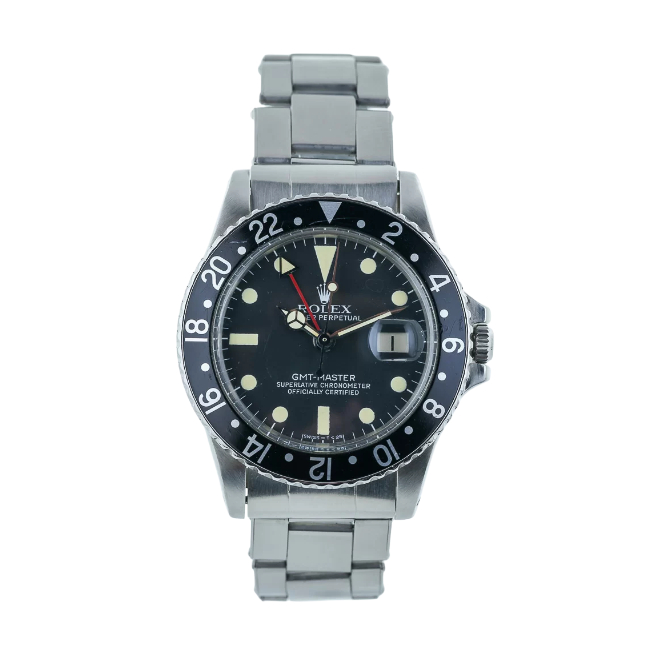 Introducing the exquisite **Rolex GMT-Master** 39mm (Reference: **1675**) Stainless Steel Men’s Watch—a true icon in the world of luxury timepieces. This vintage masterpiece was produced in **1971**, showcasing a classic design that has stood the test of time. Crafted from durable **stainless steel**, this remarkable watch features a striking **black face** adorned with non-numeric hour marks that embody sophistication and elegance. The **Oyster strap** not only enhances its aesthetic appeal but also provides comfort on the wrist. The fold-over push-button clasp ensures a secure fit for any wrist size. Designed for the adventurer in mind, this Rolex boasts an impressive **water resistance** of up to **100 meters / 330 feet**, making it suitable for various activities without compromising style or functionality. The fixed bezel complements its robust construction while maintaining its refined look. Equipped with an automatic movement mechanism, this timepiece guarantees precision and reliability—hallmarks of the prestigious brand that is Rolex. Although it does not come with original papers or box, its retail value remains noteworthy among collectors and enthusiasts alike. Whether you're adding to your collection or seeking a statement piece for everyday wear, the Rolex GMT-Master 39mm is more than just a watch; it's a legacy that reflects excellence in craftsmanship and timeless design. Don’t miss out on owning this extraordinary piece of horological history!