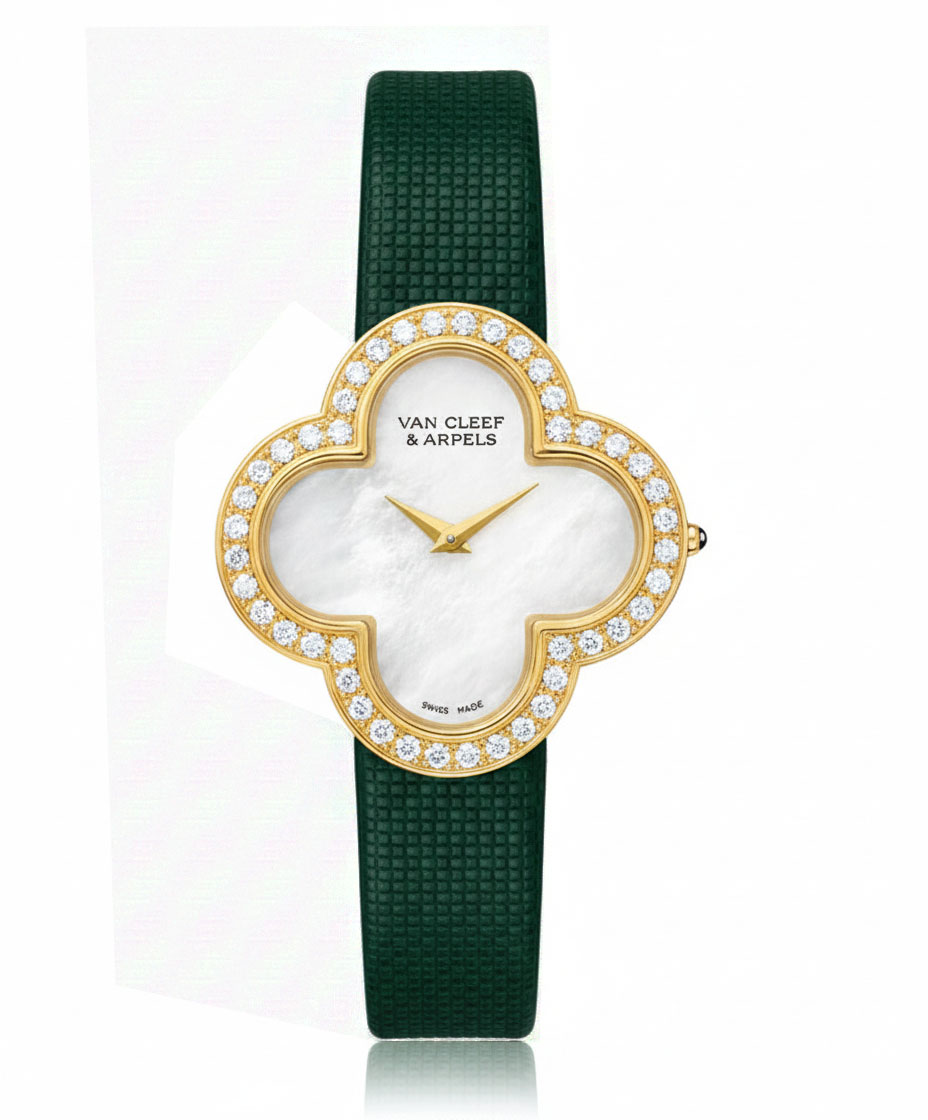Elevate your elegance with the **Van Cleef & Arpels Alhambra 30mm Women's Watch** (Reference: **VCARF52800**). This luxurious timepiece is an ideal blend of sophistication and style that captures the essence of femininity. Crafted from **18K yellow gold**, this exquisite watch features a stunning **mother of pearl face**, adding a touch of luminescence to your wrist. The case size is a perfect **30 mm**, making it suitable for any wrist size while ensuring maximum comfort. The elegant design includes a **satin strap** that complements its luxurious aesthetic without compromising on wearability. The absence of hour marks enhances its refined look while maintaining functionality with reliable **quartz movement** technology. Additionally, this timepiece boasts a **fixed bezel** also made from **18K yellow gold**, enhancing its durability and sophistication. Designed specifically for women who appreciate fine craftsmanship and high-quality materials. Though presented without original box or papers and with no visible indices on the face, the beauty of this timepiece speaks volumes about its heritage and artistry. With water resistance included in its features, you can confidently wear it on various occasions without worry. Whether dressing up for a formal event or complementing your everyday attire, the Van Cleef & Arpels Alhambra Women's Watch is sure to be a cherished addition to any jewelry collection. Indulge in luxury—experience timeless elegance today!