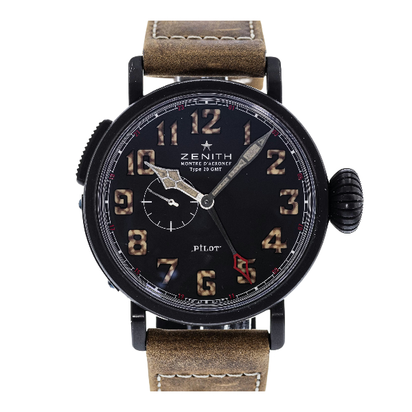 Introducing the **Zenith Pilot Type 20**, a remarkable fusion of style and functionality tailored for the modern man. This iconic timepiece showcases a substantial **48mm** case crafted from premium **titanium**, ensuring both durability and lightweight comfort. The model number **96.2431.693** signifies its exclusivity in the world of luxury watches. The striking **black face** is adorned with bold **Arabic numerals**, providing excellent readability whether you're in the cockpit or out on the town. Complementing this sophisticated dial is a high-quality **leather strap** in rich brown that offers an elegant contrast while ensuring comfort on your wrist. Equipped with an **automatic movement**, this Zenith timepiece is designed for those who appreciate precision engineering paired with timeless aesthetics. The fixed bezel further enhances its rugged charm while maintaining a sleek profile suitable for any occasion. With no box or papers included, this Zenith Pilot Type 20 remains an exceptional find for collectors and enthusiasts alike looking to add a touch of aviation-inspired elegance to their collection. Whether you’re navigating through daily life or embarking on new adventures, this luxury men’s watch exemplifies both performance and style. Elevate your wristwear game with the Zenith Pilot Type 20 today!