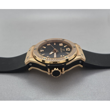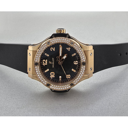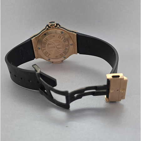 Elevate your wristwear collection with the stunning **Hublot Big Bang 38mm** unisex watch (Model: **361.PX.1280.RX.1104**). Crafted from luxurious **18K rose gold**, this timepiece is a perfect blend of style and sophistication that caters to both men and women. With a **case size of 38 mm**, it offers a comfortable fit for all wrist sizes while making a bold statement on any occasion. The striking **black face** adorned with clear **Arabic numerals** ensures excellent readability while adding an element of modern elegance to your outfit. This exceptional luxury timepiece features precise **quartz movement**, ensuring reliability and accuracy in telling time. The fixed bezel made from matching **18K rose gold** complements the overall design flawlessly. Designed for versatility, the watch comes fitted with a sturdy yet comfortable **rubber strap**, secured by a reliable deployment clasp for easy wear and removal. Despite its luxurious appearance, this Hublot Big Bang is also water-resistant, making it practical for everyday use or special events alike. Please note that this exquisite piece comes with original papers but does not include the box—making it an ideal choice for those who appreciate authenticity without unnecessary packaging. Whether you're looking to treat yourself or searching for an unforgettable gift for someone special, the Hublot Big Bang 38mm unisex watch is sure to impress anyone who values craftsmanship and style in their accessories.
