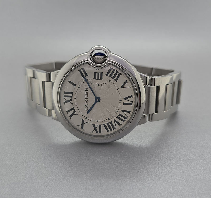 Elevate your accessory game with the exquisite **Cartier Ballon Bleu 36mm Women’s Watch** (Reference: W69011Z4). This luxurious timepiece embodies sophistication and style, making it an essential addition to any woman's collection. Crafted from high-quality **stainless steel**, this watch features a striking **silver face** adorned with elegant **Roman numeral indices**, ensuring that you not only keep track of time but do so in an exceptionally stylish manner. The **36 mm case size** is perfectly proportioned for a feminine touch while providing durability and elegance. Designed for comfort and convenience, this luxury women’s watch comes with a full band crafted from stainless steel and secured with a reliable **fold clasp**. With a water resistance of up to **30 meters (100 feet)**, it can effortlessly accompany you through daily activities without compromising its stunning aesthetic. Powered by precise **quartz movement**, the Cartier Ballon Bleu ensures accuracy and reliability. While this beauty does not come with its original box or papers, its retail value speaks volumes about its quality and craftsmanship. Whether dressing up for a formal event or adding flair to your everyday attire, the Cartier Ballon Bleu is more than just a timepiece; it's a statement of elegance that will surely turn heads wherever you go. Indulge in the luxury of Cartier today!
