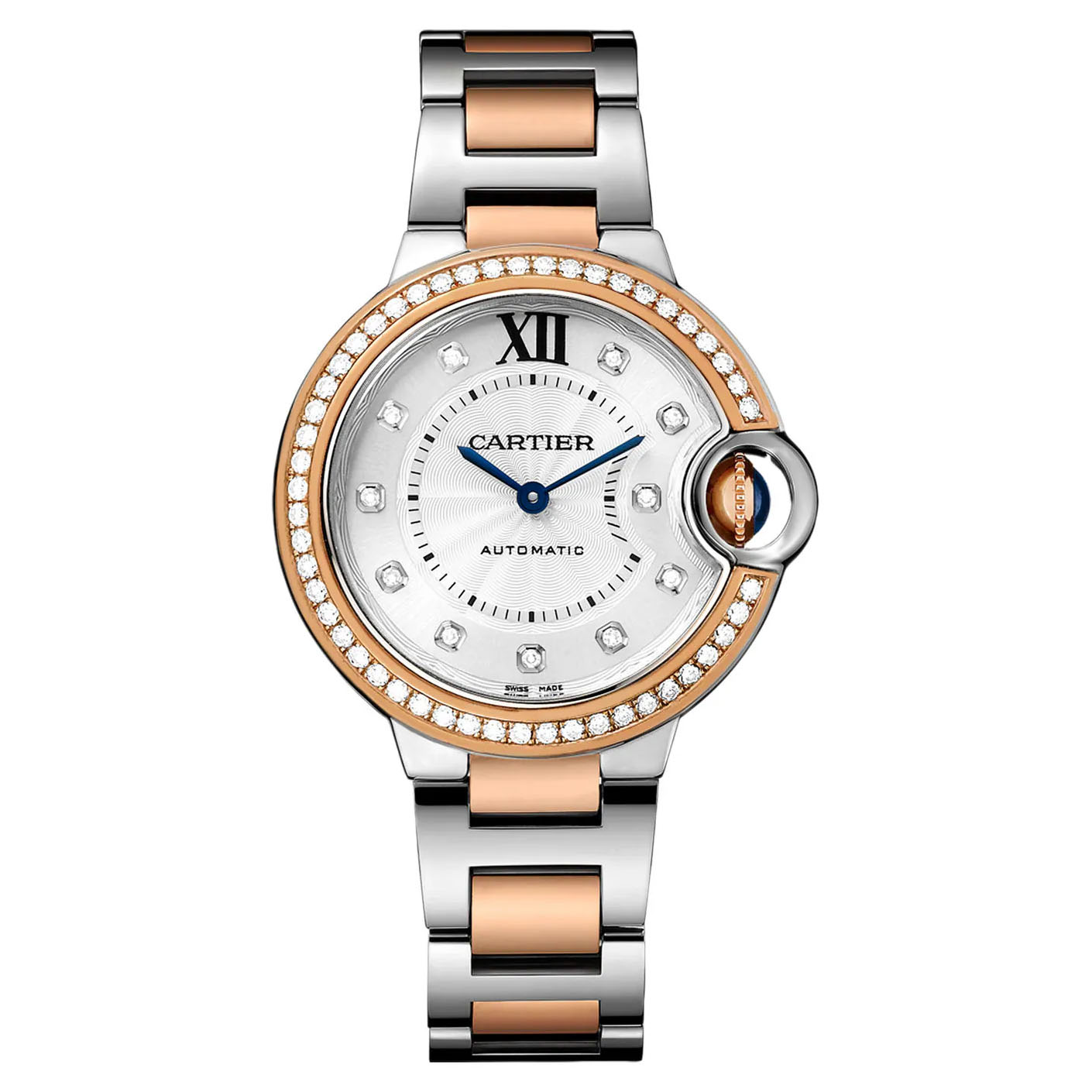 : Elevate your wrist game with the luxurious **Cartier Ballon Bleu 33mm (Reference: WE902077)**. This stunning unisex watch combines the opulence of **18K rose gold** with durable **stainless steel**, making it an ideal accessory for both men and women seeking elegance and sophistication. With a **case size of 33 mm**, this timepiece is perfectly sized for everyday wear while maintaining its presence on your wrist. The captivating **silver face** is accentuated by non-numeric hour marks that add to its timeless design. Featuring a reliable **automatic movement**, this watch guarantees accuracy and convenience without the need for constant winding. The strap is designed from premium materials — an interplay of rich **18K rose gold** and robust stainless steel — ensuring both comfort and style. The secure **fold over push button clasp** provides easy wearability while keeping your timepiece safe throughout your day. Additional features include water resistance that makes it suitable for various activities, whether you’re in the office or enjoying leisure time outdoors. While this model does not come with its original box, it does include essential papers verifying its authenticity. With a retail value of $0.00 (indicative pricing may vary), the Cartier Ballon Bleu is more than just a watch; it’s an investment in luxury. Experience unparalleled craftsmanship from one of the world’s most prestigious brands—add this iconic piece to your collection today!