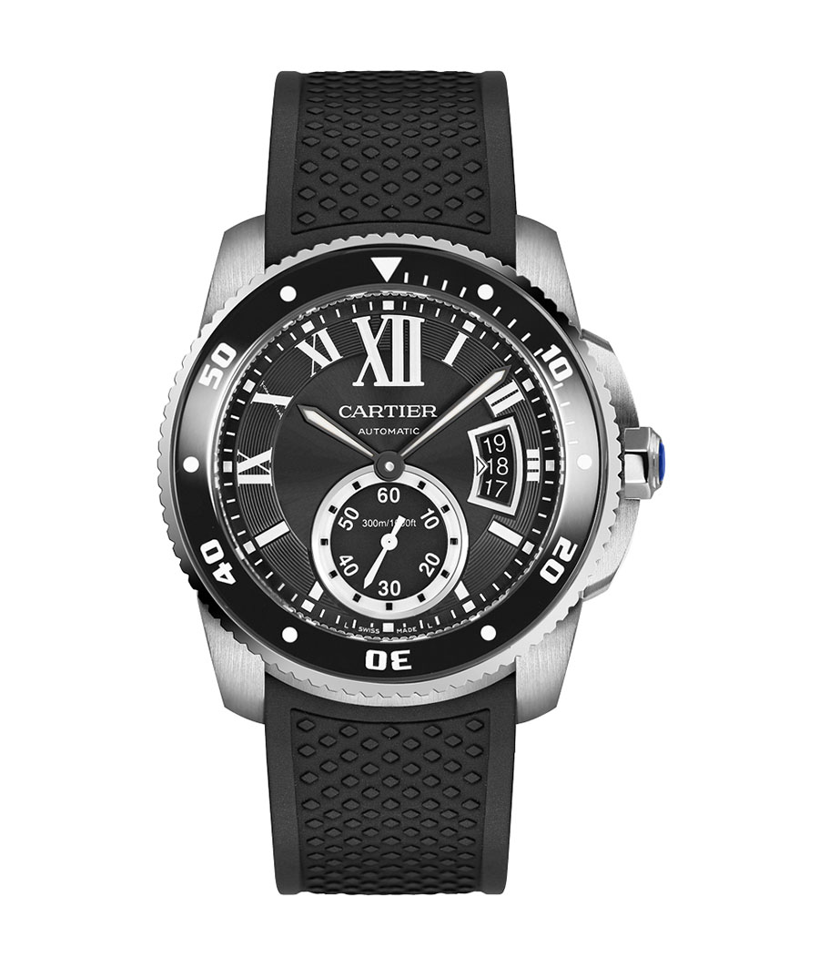 Discover the elegance of the **Cartier Calibre Diver 42mm Men's Watch (W7100056)**—a perfect blend of luxury and functionality. Crafted by the renowned brand **Cartier**, this sophisticated timepiece is made from high-quality **stainless steel** and boasts a striking **black face** adorned with classic **Roman numeral indices** for easy readability. With a substantial **case size of 42 mm**, this men's watch is designed to make a statement on any wrist. The robust construction includes a **rotatable bezel** that enhances its functionality as a diver's watch while maintaining an effortlessly stylish appearance suitable for both casual and formal occasions. Produced in **2018**, this exquisite model comes complete with original papers but does not include a box. The durable **rubber strap** ensures comfort during wear while providing resilience against daily wear and tear. Additionally, it features an automatic movement that guarantees precision in timekeeping. This Cartier Calibre Diver is also **water-resistant up to 30 meters**, making it ideal for everyday use or aquatic adventures. Whether you’re diving into the ocean or simply attending a business meeting, this versatile piece is sure to elevate your style. Elevate your collection with the Cartier Calibre Diver—where luxury meets practicality.