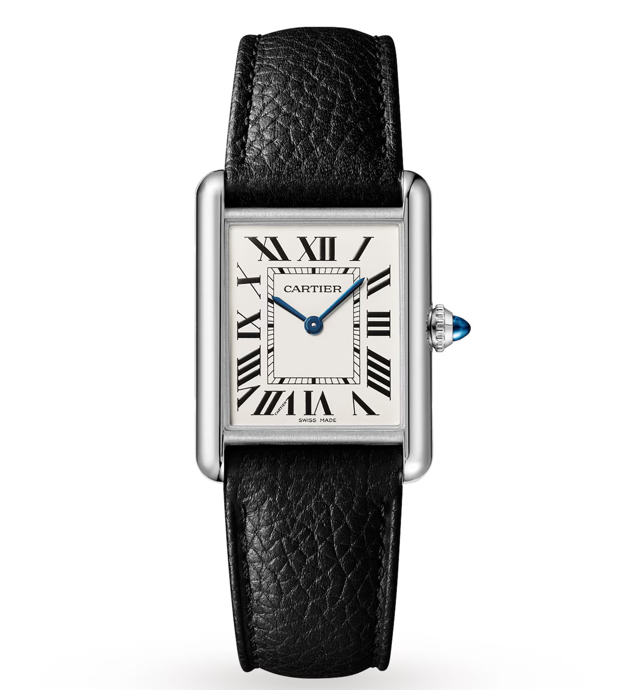 Introducing the exquisite **Cartier Tank WSTA0041**, an iconic *women's stainless steel watch* that embodies timeless elegance and sophisticated style. With a case size of **25.5 x 33.5 mm**, this luxury timepiece features a stunning white face adorned with classic *Roman numeral indices*, offering both readability and charm. Crafted from high-quality **stainless steel**, the *fixed bezel* perfectly complements the sleek design of this beautiful wristwatch. The *black leather strap* provides comfort and versatility, making it suitable for both casual outings and formal events. Powered by reliable **quartz movement**, you can trust that your Cartier Tank will keep precise time while adding an air of refinement to your ensemble. The water-resistant feature ensures durability against splashes or brief immersions in water. Although this model does not come with a box or papers, its authenticity and craftsmanship are unmistakable as you embrace the legacy of Cartier. Perfectly designed for modern women who appreciate luxury and functionality in their accessories, the Cartier Tank WSTA0041 is more than just a wristwatch; it's a statement piece that elevates your style quotient effortlessly. Elevate your collection with this stunning *luxury women's timepiece*, where sophistication meets practicality—all within the classic appeal of Cartier's renowned design ethos.