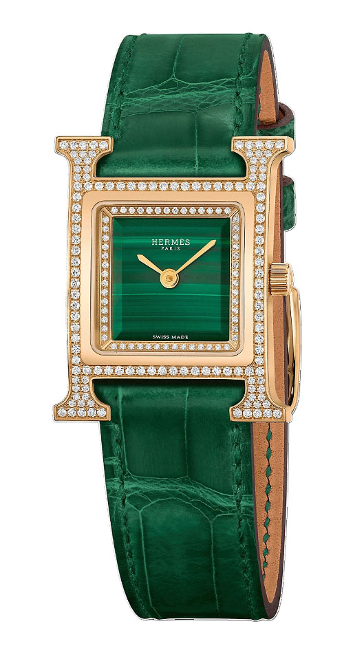 Explore the exquisite craftsmanship of the **Hermes Heure H Women's Watch**, model number **W054095WW00**. This luxurious timepiece features a unique case size of **25 x 30 mm**, making it both elegant and easy to wear. Crafted from high-quality **18K rose gold**, this watch exudes sophistication and style. The striking **green face** provides a beautiful contrast against the warm tones of the rose gold case while maintaining a chic aesthetic that suits any occasion. Designed without hour marks, the clean dial emphasizes its minimalist beauty. Comfort is key with this **women's wristwatch**, which comes with a supple **leather strap** that ensures a perfect fit for various wrist sizes. The tang clasp type secures the watch comfortably on your wrist. With its **fixed bezel** feature and reliable **quartz movement**, you can trust this timepiece not only to elevate your wardrobe but also to keep accurate time. Additionally, it boasts water resistance for added durability in everyday situations. Please note that this remarkable piece does not come with original box or papers but stands as an authentic symbol of luxury and timelessness from one of the world's most prestigious brands—**Hermes**. Perfect for those who appreciate elegance blended with functionality in their accessories.