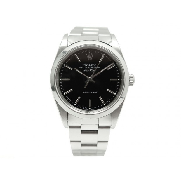 Experience timeless elegance with the **Rolex Air King 33mm (Reference 14000)**. Crafted by the renowned Swiss brand **Rolex**, this exquisite timepiece captures attention with its striking **black face** and refined design. The **33 mm case size** makes it a perfect fit for both men and women, embodying true versatility as a **unisex luxury watch**. Manufactured in **2005**, this model features a robust **stainless steel case** that ensures durability while maintaining its luxurious appeal. The iconic **Oyster band**, made from high-quality silver-tone stainless steel, complements the watch's aesthetic perfectly and comes equipped with a secure **fold clasp** for comfort during wear. With non-numeric hour marks adorning the dial, reading time becomes an effortless experience. The watch is powered by an accurate and reliable **automatic movement**, showcasing Rolex's commitment to precision. Designed to withstand life's adventures, this timepiece boasts impressive **water resistance of up to 100 meters (330 feet)**—making it suitable for swimming or snorkeling without worry. While this particular watch does not include the original box, it comes complete with authenticity papers for peace of mind regarding your investment. With a retail value of $0.00 at present—a rare find indeed—the Rolex Air King remains a coveted piece among collectors and enthusiasts alike. Elevate your collection or gift someone special with this iconic piece from one of the world's leading luxury brands. Don't miss out on owning this remarkable blend of style and functionality!