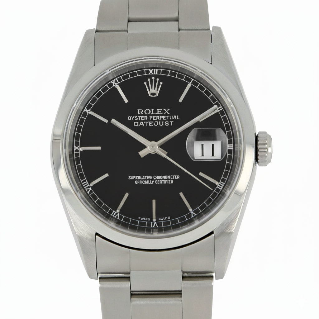Introducing the iconic **Rolex Datejust 16200**, a quintessential blend of luxury and functionality that every discerning gentleman should own. Crafted by the prestigious brand **Rolex**, this timepiece features a sleek **36mm** stainless steel case that embodies both durability and style. The stunning **silver face** enhances its sophisticated appeal while providing clarity with its **non-numeric hour marks**. Whether you're at a formal event or enjoying an evening out, this watch will complement your attire perfectly. The **Oyster strap** adds to its robust design and ensures comfort on your wrist. Equipped with an **automatic movement**, this watch offers precision that lasts. It boasts impressive water resistance of up to **100 meters (330 feet)**—ideal for those who live an active lifestyle yet refuse to compromise on elegance. Although it does not come with original box or papers from its production year in **2005**, the value it brings remains invaluable. The smooth bezel made of stainless steel accentuates its understated charm while the fold clasp provides ease of wear. Elevate your accessory game with the classic sophistication of the **Rolex Datejust 16200**—the ultimate choice for men who appreciate quality craftsmanship in their luxury watches.