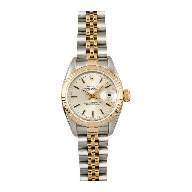 : Introducing the exquisite **Rolex DateJust 26mm (Reference: 69173)**—a luxurious timepiece designed specifically for women who appreciate both style and functionality. Crafted by the renowned Swiss watchmaker **Rolex**, this stunning watch features a **silver face** that beautifully complements its **18K yellow gold and stainless steel case**, creating a striking contrast that is sure to turn heads. The elegant **Jubilee strap** adds a touch of sophistication while ensuring comfort on your wrist. Measuring at **26 mm**, this watch is perfectly sized to suit any lady's wrist. The classic design includes non-numeric hour marks on the dial that provide easy readability without compromising on aesthetics. Equipped with an **automatic movement**, this Rolex offers precision timing without requiring manual winding. Its durable construction boasts a water resistance of up to **100 meters (330 feet)**—ideal for both everyday wear and special occasions. Included with your purchase are the original box and papers, ensuring authenticity along with peace of mind. Whether you're dressing up for an event or enjoying casual outings, the *Rolex DateJust* exemplifies luxury in every detail. Elevate your accessory collection with this timeless piece—a perfect blend of practicality and elegance that only a brand like *Rolex* can deliver!