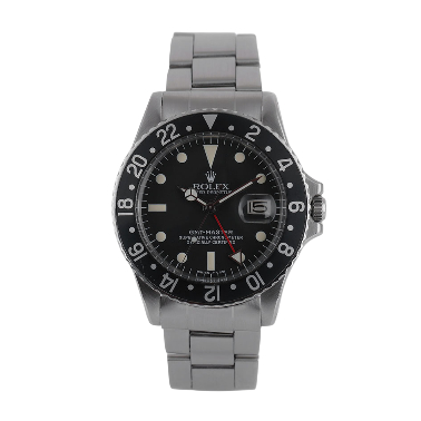 : Introducing the exquisite **Rolex Gmt-Master II** - a timeless piece that effortlessly combines luxury and functionality. This stunning **39mm men's watch** (Reference: **1675**) showcases a robust yet elegant design crafted from high-quality **stainless steel**. The sleek **black face** is complemented by non-numeric hour marks that add to its sophistication. The durable **Oyster strap**, also in luxurious silver color, ensures comfort on your wrist while enhancing its overall aesthetic appeal. Engineered for performance, this watch features an **automatic movement** that guarantees precision and reliability. Water-resistant up to **100 meters (330 feet)**, the Rolex Gmt-Master II is not just about looks; it's designed to withstand the elements. Although it does not come with box or papers, its iconic status speaks volumes about its value. Elevate your collection with this remarkable piece of horological artistry from the renowned brand – Rolex. Perfect for those who appreciate quality craftsmanship in a sophisticated timepiece! Whether for daily wear or special occasions, this men’s luxury timepiece remains an outstanding choice.